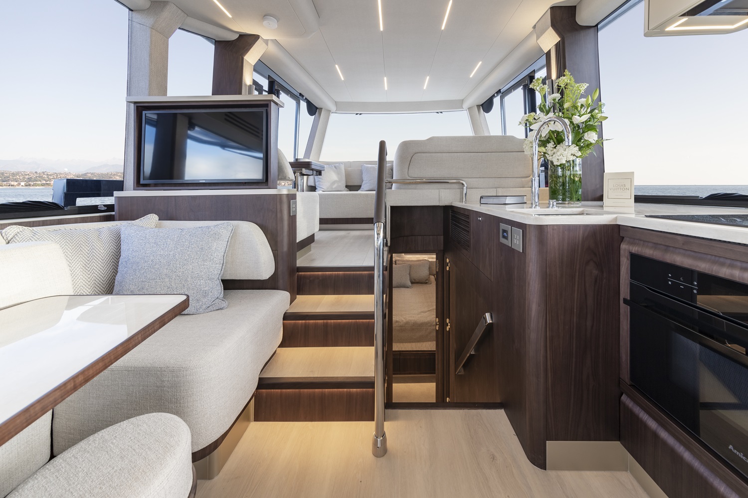 Ця яхта ідеально підходить для тих, хто цінує свободу руху, надійність і можливість відчувати себе незалежним у будь-якій морській подорожі. Незважаючи на свої компактні розміри, Galeon 430 EXP має просторий та світлий інтер’єр із комфортними каютами, просторою зоною для відпочинку та сучасним обладнанням, яке забезпечує максимальну зручність і безпеку.