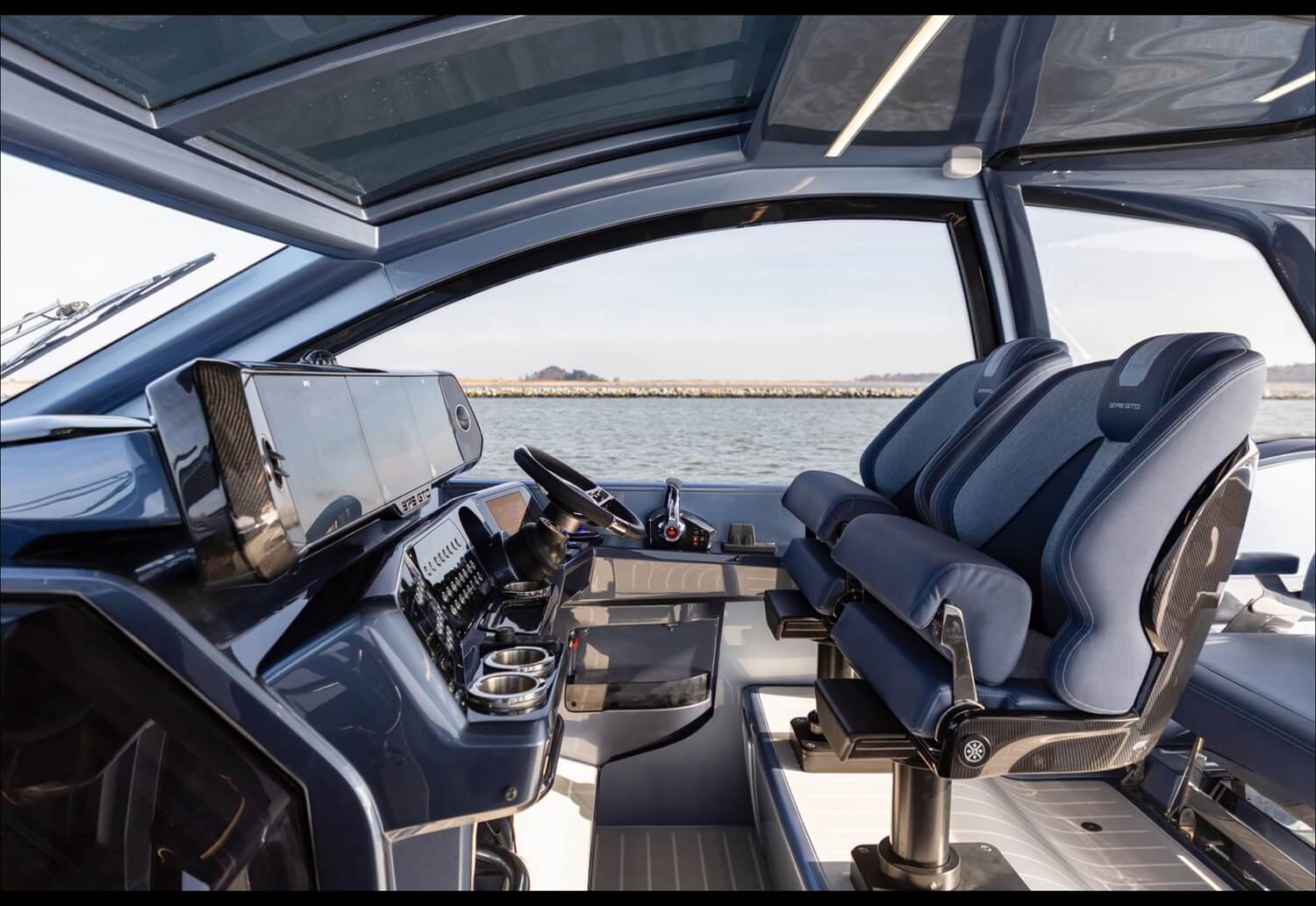 375 GTO піклується про капітана, дозволяючи відкривати не тільки люк на даху, а й бічні вікна порту та правого борту для кращої вентиляції та відчуття швидкості. Двоколірна рульова консоль може бути оснащена потрійними екранами для моніторингу продуктивності, навігації та пошуку риби одночасно, в той час як сидіння та колесо регулюються електрично – розумно!