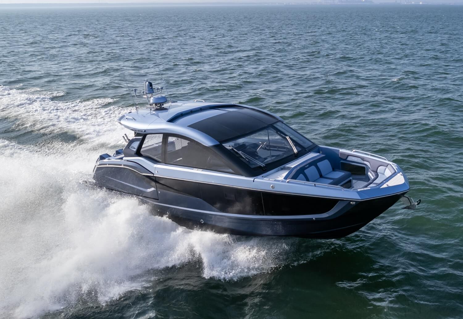 Galeon 375 GTO отличается элегантным дизайном, сочетающим современные линии и функциональность. Ее жесткая крыша обеспечивает защиту от погодных условий, а большие окна и люки наполняют интерьер естественным светом.